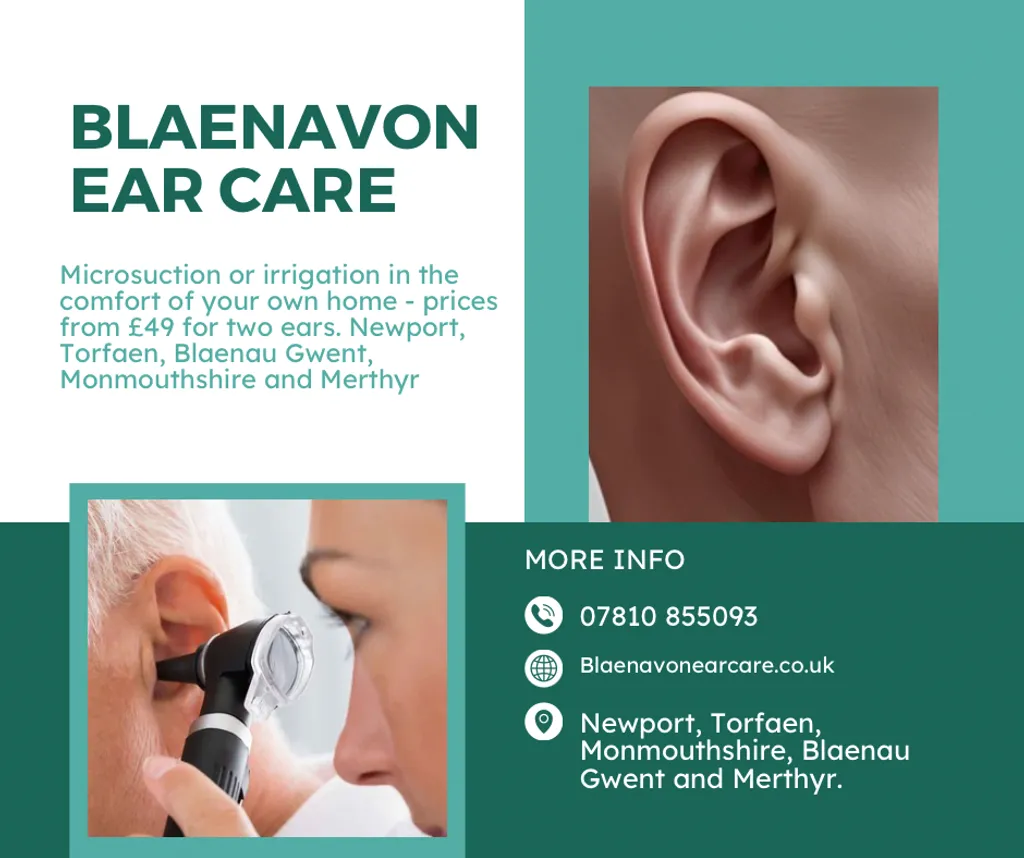 Blaenavon Ear Care are here to make life easier. Ear wax removal without the need for you to leave your house! DBS checked. Most of South Wales Covered. Prices start at £49 for both ears. Microsuction £59. Ear checks (if no wax is found) for just £20 giving you peace of mind.